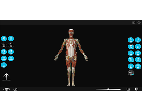 实现功能 | 1. 系统解剖学 包括运动系统、肌肉动画、肌肉起止点、内脏学、脉管系统、感觉器、神经系统、内分泌系统、消化系统、男性生殖系统、女性生殖系统、淋巴系统、呼吸系统以及整体人。 1. 运动系统包括全身骨骼系统、全身骨连接系统、全身肌肉系统、全身骨性标注、全身骨学结构5套,局部组合3D解剖结构12套,局部骨学标注24套; 2. 包含3D肌肉动画64个; 3. 肌肉起止点包括全身肌肉起始点、胯部肌肉起止点、头部肌肉起止点、颈部肌肉起止点、肩部肌肉起止点、上肢肌肉起止点和下肢肌肉起止点7套; 4. 内脏学包含消化系统全貌、呼吸系统全貌、泌尿系统全貌、男性生殖系统全貌、女性生殖系统全貌、鼻炎喉部、口腔、食管、器官和支气管、胸膜、纵膈、肝外胆道系统、胰腺、小肠、空回肠、大肠、结肠、腹膜、输尿管、尿道、睾丸;包含内脏标记6套; 5. 脉管系统包括心脏标记6套;心血管系统、淋巴系统、以及脉管系统去不结构共计25套; 6. 感觉器包括视器、眼球、前庭蜗全貌以及骨迷路4套; 7. 神经系统包括中枢神经、周围神经、大脑传导、端脑、脑血管、脑神经、皮神经的阶段性分布、健脑、核团脊神经以及内脏神经等10套3D结构;大脑半球、脑干外形、小脑正中矢量切面、电脑半球语言中枢及小脑外形5套3D标注模型; 8. 内分泌系统包括内分泌腺体3D结构1套; 9. 整体人包含男性、女性整体人个一套,每套包含8000+3D人体结构。 2. 经脉腧穴模块:包括十二经脉、奇经八脉、经外奇穴 1. 十二经脉包括人体十四经穴、手阳明大肠经、手太阴肺经、足阳明胃经、足太阴脾经、手少阴心经、手太阳小肠经、足太阳膀胱经、足少阴肾经、手厥阴心包经、手少阳三焦经、足少阳胆经、足厥阴肝经13套3D解剖结构; 2. 奇经八脉包括任脉及其腧穴、督脉及其腧穴3D解剖结构; 3. 经外奇穴包含46个穴位高精度3D结构; 4. 针灸3D解剖模型,结合视频清晰呈现针刺穴位位置、周边神经、血管、主治疾病、针灸核心要点; 5. 包含穴位定位视频演示功能。 3. 触发点康复治疗 1. 包括头部颈部、肩上背上臂部、肘前臂手部、胸腹部和生殖器、中背下背臀部、胯大腿膝部和小腿踝和足部7套触发点3D解剖结构; 2. 提供与7个触发点区域相关联的疼痛区治疗方案; 3. 全身触发点3D解剖结构展示、疼痛位置展示; 4. 各个触发点简介,在人体3D模型上的具体位置; 5. 触发点定位视频,在身体上查找触发点的方法; 6. 触发点引起的具体症状描述及对应的疼痛区域; 7. 通过症状类型选择,筛选和搜索所需要的触发点列表,快速找到治疗方案,并可进行收藏,方便再次查找。